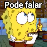 EspongeBob Quadrinhos com expressão curiosa, segurando um caderno e um lápis, com a frase 'Pode falar' em cima.