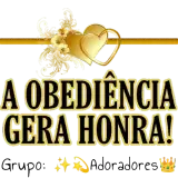 Um coração dourado com explosão de fogos de artifício ao lado, com texto 'A OBEDIÊNCIA GERA HONRA!' em preto e dourado,…