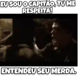 Imagem de uma pessoa ao lado de outra com expressão séria, com as frases "EU SOU O CAPITÃO, TU ME RESPEITA!" e…