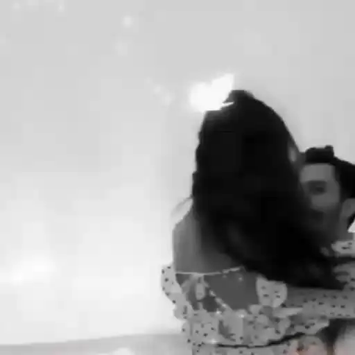 Uma mulher olhando para um homem em preto e branco, com expressão séria.