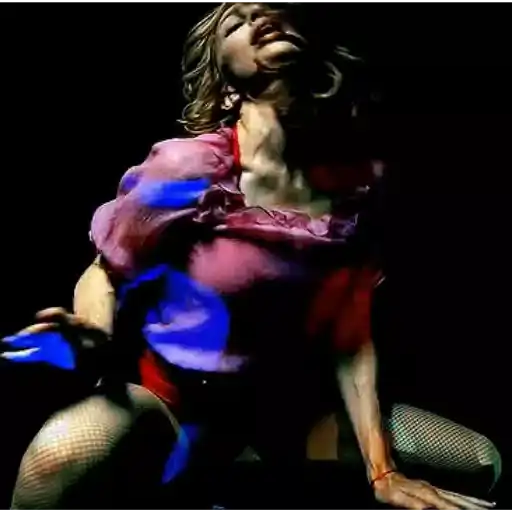 Uma mulher com cabelo escuro e roupa preta sentada em uma cama, com expressão de intimidade, em um ambiente com…