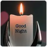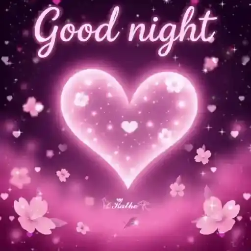 Uma mensagem de 'Good night' em letras roxas cursivas, cercada por corações e estrelas em um fundo escuro.