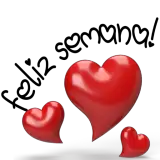 Um coração vermelho ao lado do texto 'FELIZ SEMANA' em letras douradas, sobre um fundo colorido com tons de verde,…