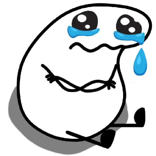 Personagem de desenho animado com olhos grandes e tristes, lágrimas azuis nos olhos e expressão de tristeza ou…