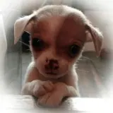 Cachorro amarelo com a mão sobre o rosto, parecendo envergonhado ou tímido.