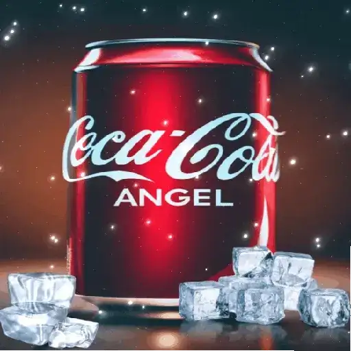 Lata de Coca-Cola Rosita, com gelo ao redor, em fundo vermelho com faíscas.