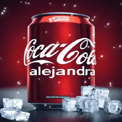 Lata de refrigerante Coca-Cola com o nome 'alejandra' personalizado, rodeada de cubos de gelo em um fundo vermelho com…
