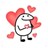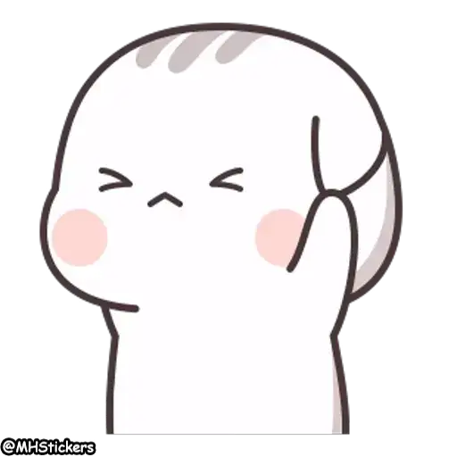 Um personagem de desenho animado com expressão tímida ou envergonhada, com bochechas rosadas e sobrancelhas franzidas.