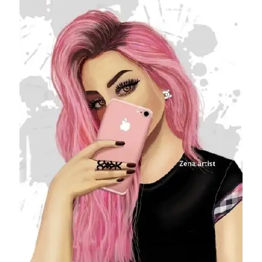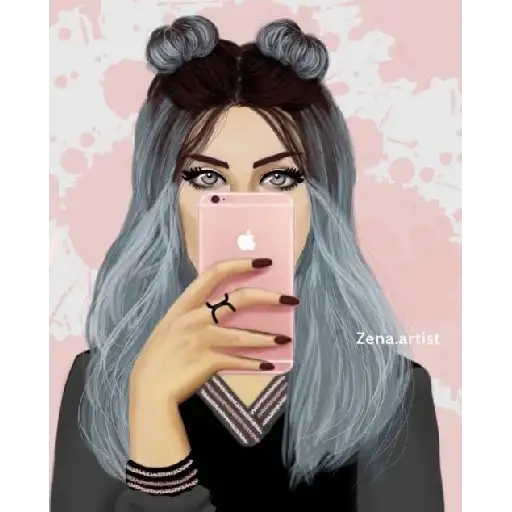 Este conjunto apresenta ilustrações de mulheres jovens com cabelos coloridos em tons de rosa, roxo e azul. Elas estão representadas em diferentes poses, algumas segurando celulares ou aplicando maquiagem, todas com um estilo visual único e moderno.