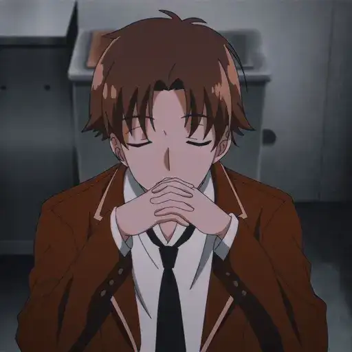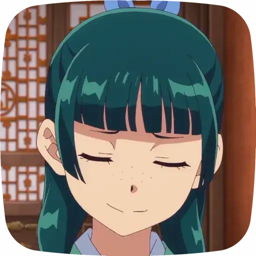 Rosto de uma jovem anime com olhos azuis e cabelos verde-escuros, expressão surpresa ou curiosa.