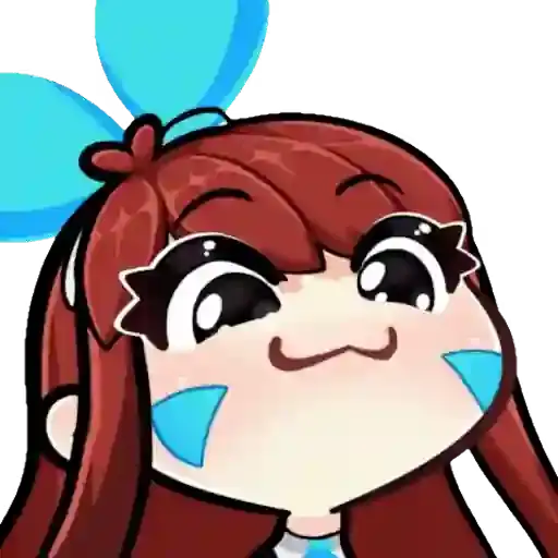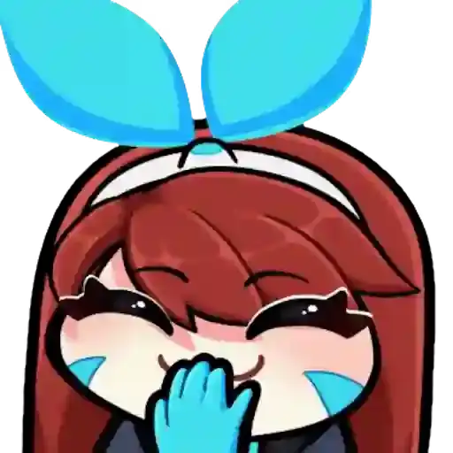 Garota de anime com orelhas de coelho azuis, mão na boca e expressão tímida.
