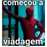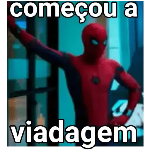 Homem-Aranha com o braço levantado e texto 'começou a viadagem'