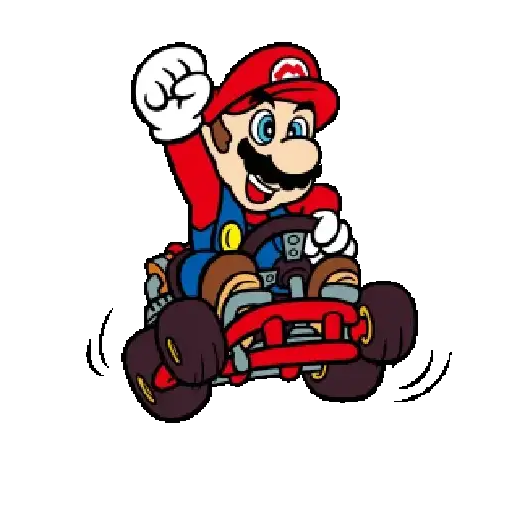 Mario de Super Mario Kart com o braço levantado e sorrindo