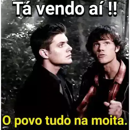 Dois homens olhando para o lado, com texto 'Tá vendo aí!! O povo tudo na moita.' sobreposto. A imagem é escura com tons…