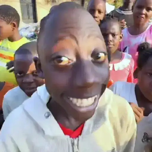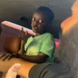 Dois meninos brincando ao ar livre, um tentando levantar um grande recipiente de plástico.