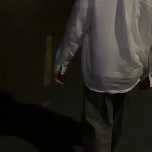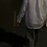 Um homem de meia-noite com uma camisa branca e calça escura, andando em uma direção não especificada em um ambiente…