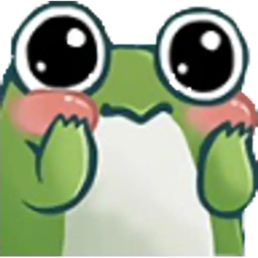 Um sapo verde com olhos grandes e bochechas rosadas, parecendo envergonhado ou tímido.