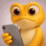 Um sapo amarelo com olhos grandes e sorriso, acenando com a mão.