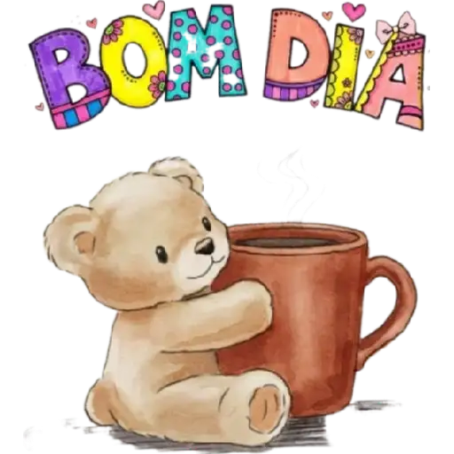 Hello Kitty sentada à mesa com uma xícara de café, um bule e um pedaço de bolo, com a janela ao fundo e o sol…