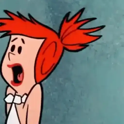 Wilma Flintstone, uma mulher de cabelos vermelhos em um vestido branco de pedra, está ao lado de uma mesa com um abajur…