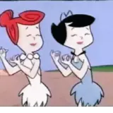 Duas personagens femininas dos Flintstones sentadas, com a frase 'Tenho fofocas' acima delas.