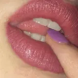 Dentes com aparelho ortodôntico e brilhantes, lábios rosa