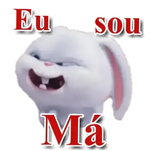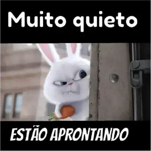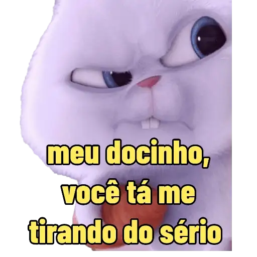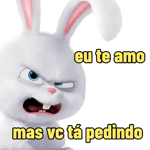 Um coelho com expressão séria e olhos azuis, com texto amarelo sobreposto: 'meu amor, você é insuportável às vezes'.