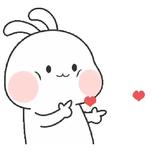 Um personagem de desenho animado branco com olhos fechados e bochechas rosadas, fazendo um gesto com as mãos.