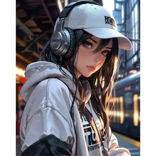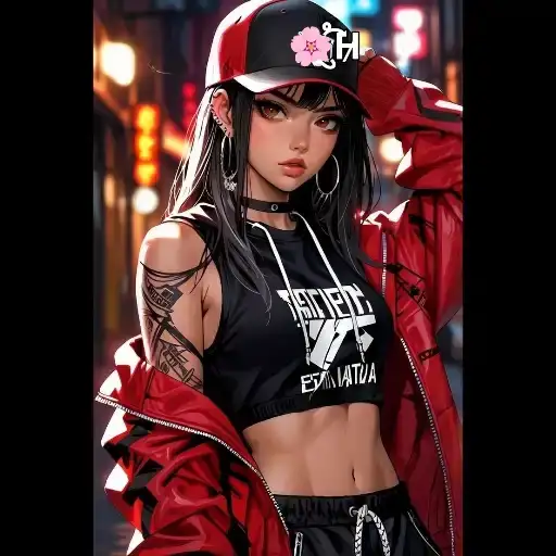 This collection features a young woman in various poses and streetwear outfits, with an urban and modern style. She is shown wearing caps, jackets, sunglasses, and other accessories.