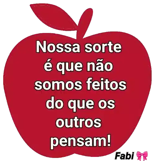 Um grande maçã vermelha com uma folha e o texto "Nossa sorte é que não somos feitos do que os outros pensam!" em branco.