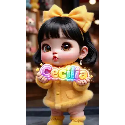 Menina de cabelo preto com franja e um laço amarelo na cabeça, vestindo um casaco amarelo, segura uma placa colorida…