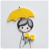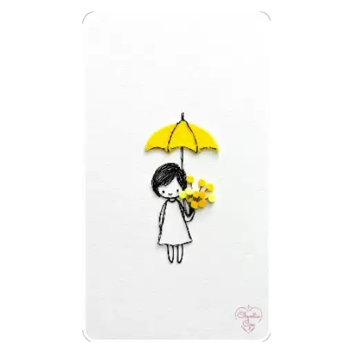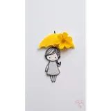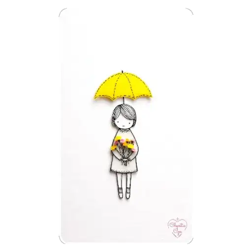 This collection features a cute girl holding a yellow umbrella and flowers. She is shown in different poses and angles, but always with the same umbrella and flowers.
