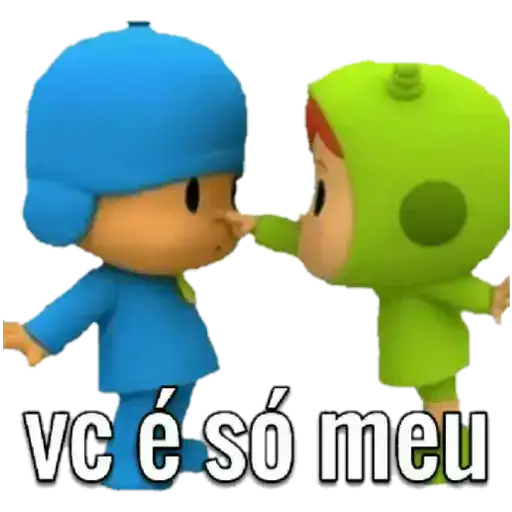 Dois personagens de desenho animado, um de azul e outro de verde, se enfrentam com as mãos nas narizes. O texto 'vc é…