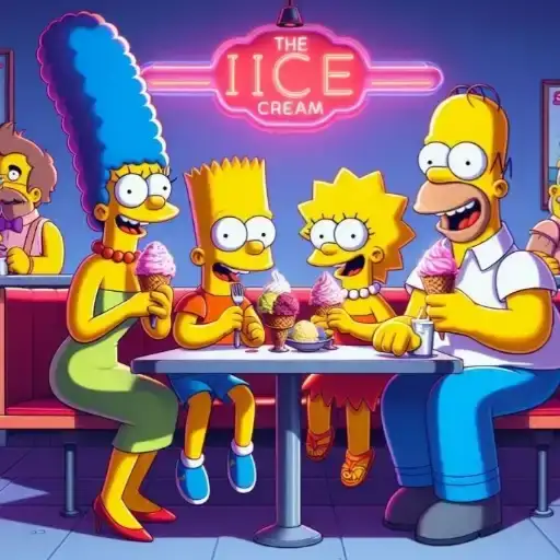 Dois personagens dos Simpsons conversando, um com cabelo castanho e camisa rosa, o outro com cabelo pontiagudo e…