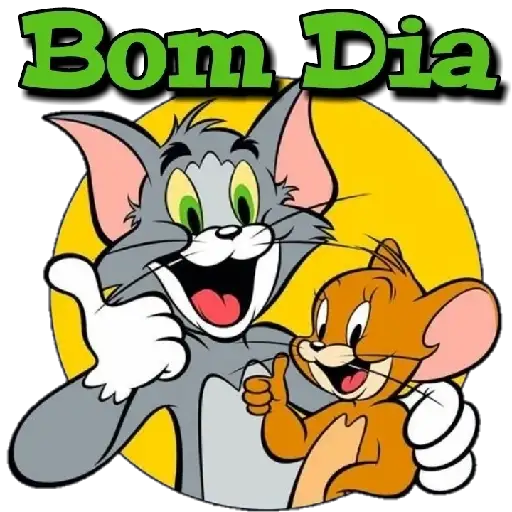 Tom e Jerry sorrindo e fazendo um gesto de aprovação, com o texto 'Bom Dia' em verde acima deles.