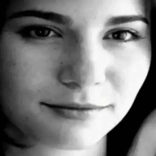 Rosto de uma mulher com expressão séria e ligeiramente desapontada, com o cabelo escuro preso.