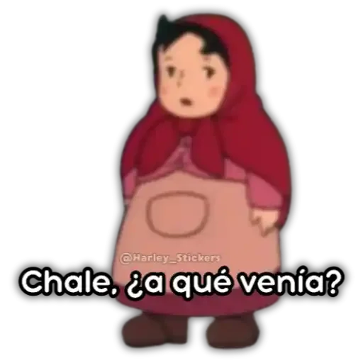 A girl with a surprised and confused expression wearing a pink outfit and a red hood, with the text 'Chale, ¿a qué venia?'
