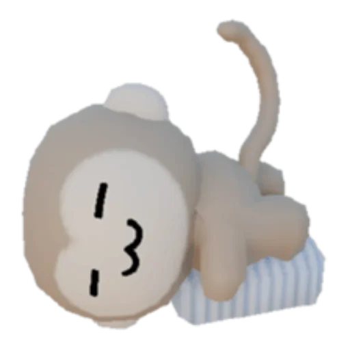 A gray monkey with a sad expression, lying on a striped surface, with its tail raised.