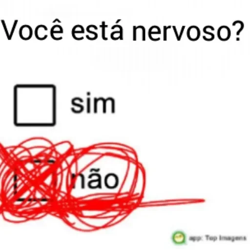 A questionnaire with the question 'Você está nervoso?' and answer options. The 'yes' option is represented by an empty square and the 'no' option is written amidst a drawing of red lines.