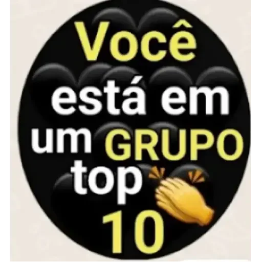 Um sticker com texto 'ENTROU no GRUPO PARTICIPE' em branco e amarelo sobre fundo preto, com uma mão amarela apontando…