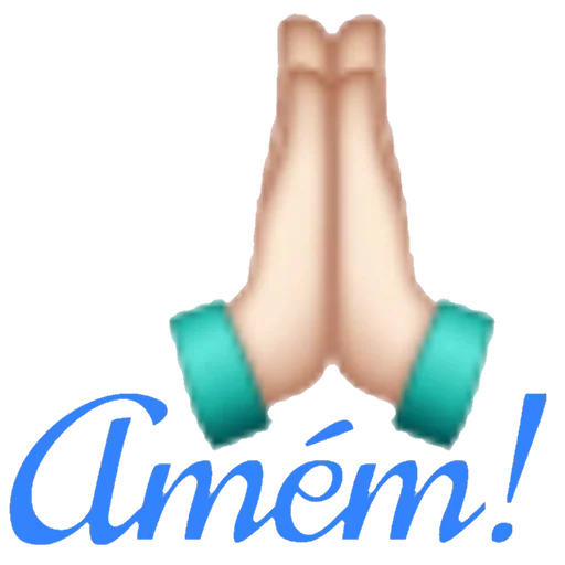 Hands clasped in prayer with green bracelets and the text 'Amém!' in blue.