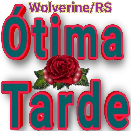 A red rose with green leaves between the words "Ótima Tarde" in large red letters with black outline. Above, "Wolverine/RS" in colorful letters.