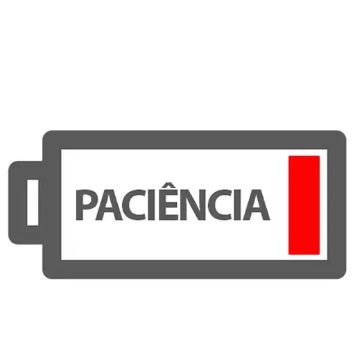 A battery with the text 'PACIÊNCIA' and a red charge bar.