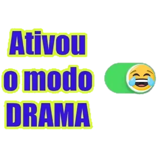 A laughing emoji with tears, next to the text "Ativou o modo DRAMA" in blue letters with a yellow outline.