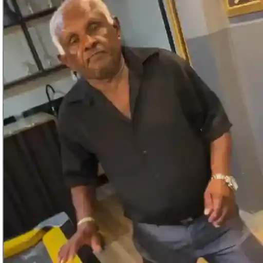 Homem com expressão de relaxamento ou alívio, com os olhos fechados e a cabeça jogada para trás.