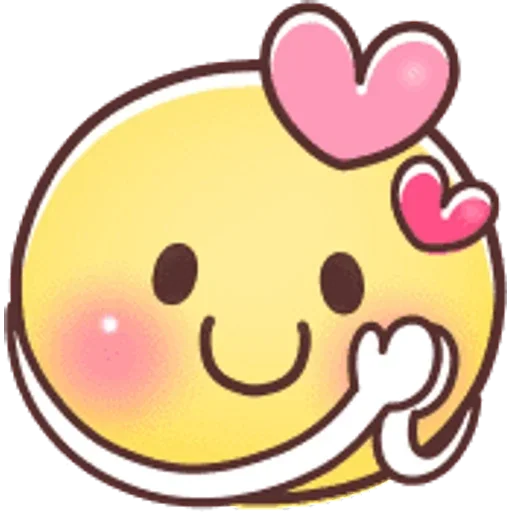 A yellow emoji with a pink blush on its cheek, a smile, and two pink hearts on its head, one larger and one smaller, with its hand on its chin.