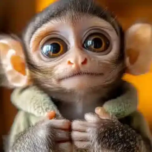 Macaco com expressão séria, mãos posicionadas ao redor da cabeça como se estivesse com dor de cabeça, fundo cinza.