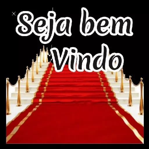 Sejam Bem Vindos em letras grandes e vermelhas com efeito de sombra rosa.