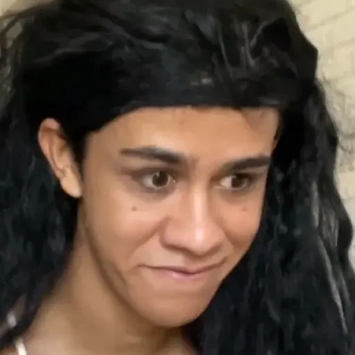 Rosto de uma mulher com expressão de desconfiança ou surpresa, com boca ligeiramente aberta e sobrancelhas franzidas.