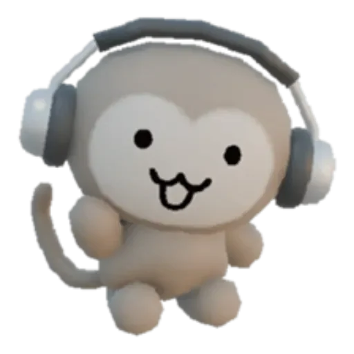 A gray monkey wearing headphones with a funny smile on its face.